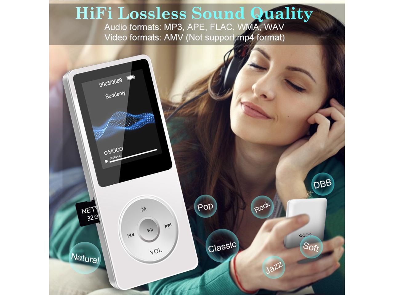HiFi Lossless Sound Quality: Mature HiFi technology and Noise Reduction technology provide you with lossless music, this MP3 music player supports multiple audio formats, such as MP3 / WMA / WAV / APE / FLAC, you can enjoy immersive music.