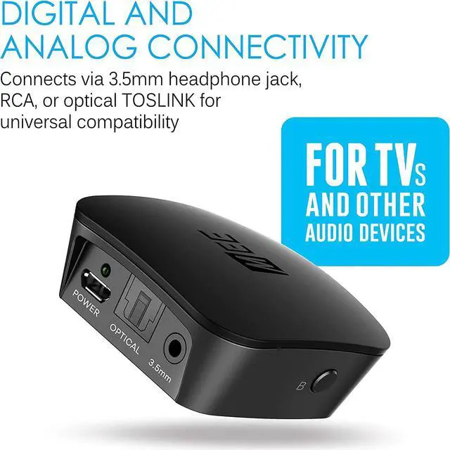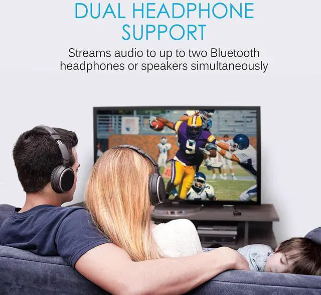 HIGH FIDELITY WIRELESS AUDIO: Bluetooth transmitter allows TVs to stream high definition stereo sound wirelessly, letting you enjoy your TV with your favorite Bluetooth wireless headphones without disturbing roommates, children, or other family members