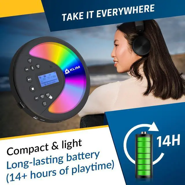 ENJOY THE AUDIO QUALITY YOU DESERVE. The KLIM Discover has been designed to gift you with the most enjoyable listening experience. Because CDs provide loss-less audio quality, the experience is never complete without a good headphone. We've included a foldable pair of headphones to ensure that you can listen to your favorite albums with the best audio quality. And forget about buying batteries: the KLIM Discover is equipped with a premium-quality rechargeable battery.