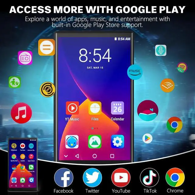 Never run out of space for your favorite content! This MP3 Player with Bluetooth and WiFi comes with 32GB internal storage and a complimentary 64GB SD card, giving you ample room for thousands of songs, podcasts, and videos. Need more? Expand up to 1TB via an external microSD card to store an entire music and video collection in one portable device.