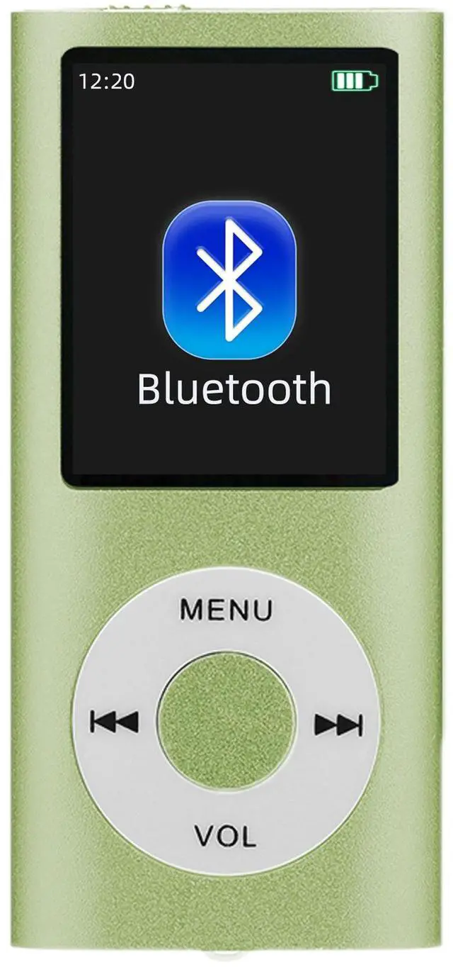 SOEWIOU green Bluetooth MP3/MP4 player supports TF card expansion, Bluetooth audio, and e-book reading. Compact and lightweight, easy to carry, with long battery life and simple operation, specially designed for students to listen to music, learn languages and read novels. Fresh green appearance, stylish and practical for campus and daily use.