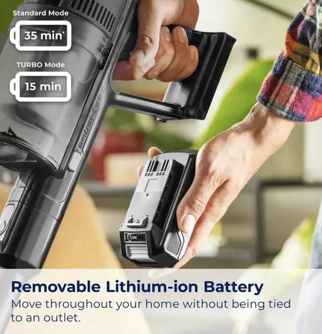 • CORDLESS CLEANING. Get up to 15 minutes of powerful cleaning in turbo mode1 or up to 35 minutes2 in standard mode.