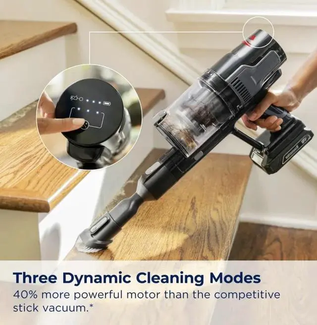 • 40% MORE POWERFUL MOTOR. Than the competitive stick vacuum.*