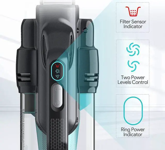 LED Display and USB-C - LED shows the remaining battery charge and speeds, Smart filter sensor detets when the filter becomes clogged and needs to be cleaned. The vacuum battery supports up to 30 minutes. Fully charged in 3-4 hours using the USB-C port