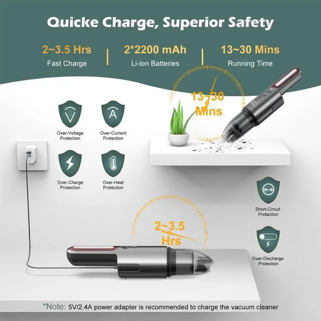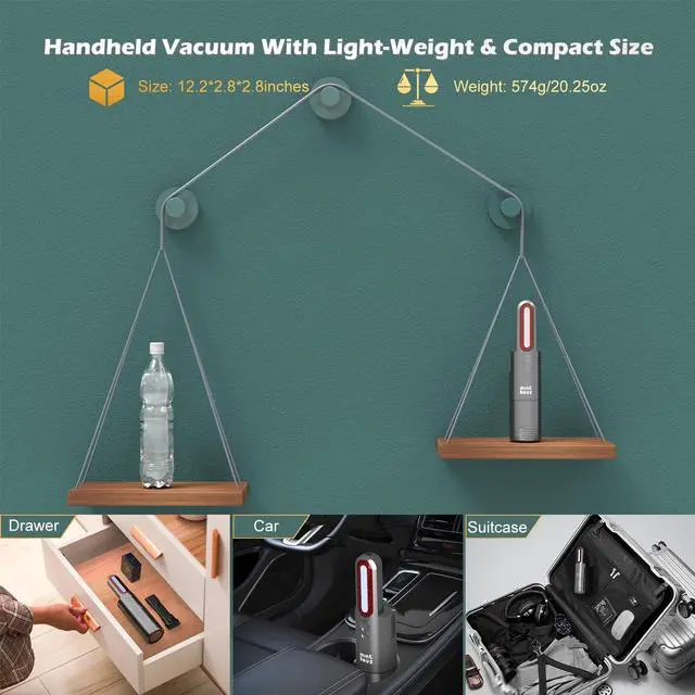 Ergonomic Handle: The ergonomic handle help you easy to hold the hand vacuum, give you a comfortable cleaning experience.