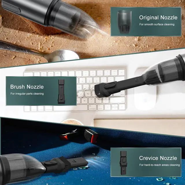 Minthouz cordless handheld vacuum cleaner has strong suction power and excellent performance, and is an ideal tool for quick and easy cleaning, such as paper scraps, dust, and pet hair. Wireless design, 3 kinds of accessories-no cumbersome wire winding, can free up your space, and easy to clean the home, the interior of the vehicle and hard-to-reach corners, aiming to provide a clean and dust-free living environment for your home and car.