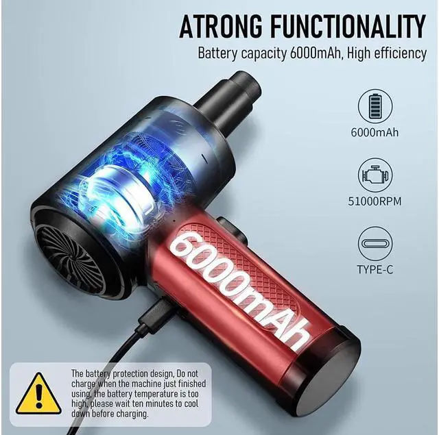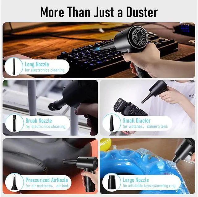 The Strongest 3-speed Compressed Air Duster Safety and High Performance Rechargeable Compressed Air Duster Portable Cordless Air Duster Many Accessories & Wide Applicability