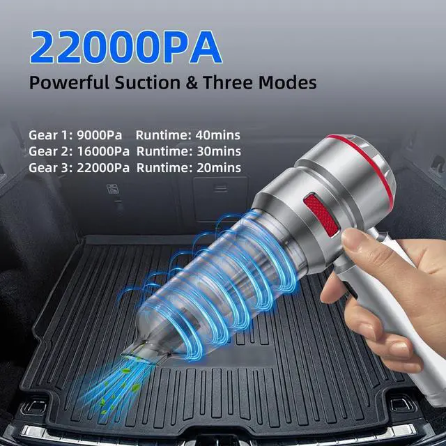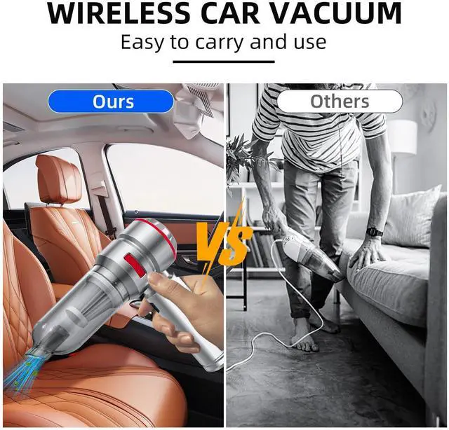 - [Easy to Carry]This Car Vacuum Portable Cordless is comfortable to hold, easy to operate, beautifully designed, and compact and lightweight.You can use the handheld vacuum cleaner to clean up mosquitoes, food residue. Perfect for outdoor picnics and traveling. Handheld vacuum cordless is small and lightweight. Keep your handheld car vacuum in a cabinet or store it in your favorite car after use.