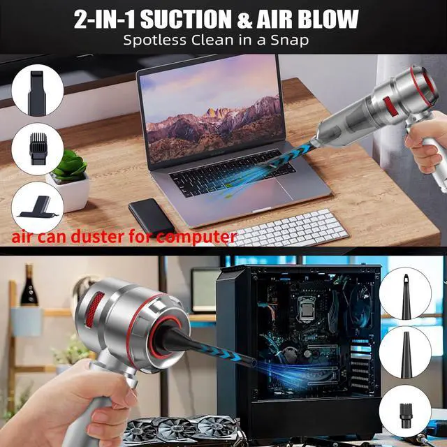 - [Widely Used Scenarios]Mini handheld vacuum cleaner is used in widely scenarios, which can help you keep your home, car and traveling tidy. The portable vacuum cleaner can be used to clean fine dirt from computer keyboards, computer mainframes, clean dust from air conditioners, sofas, windows, clean fallen hair and animal hair, and can also be stored in the car to help clean up the seats, doors and other narrow places in the car stains and so on.
