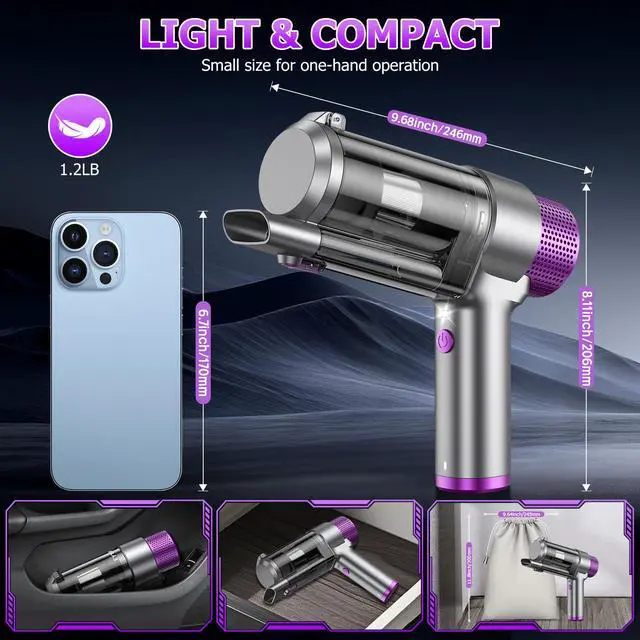 | Special Feature | 16000PA Strong Suction, Cordless & Portable, Dual Filtration System, LED Light, Suction & Blow |