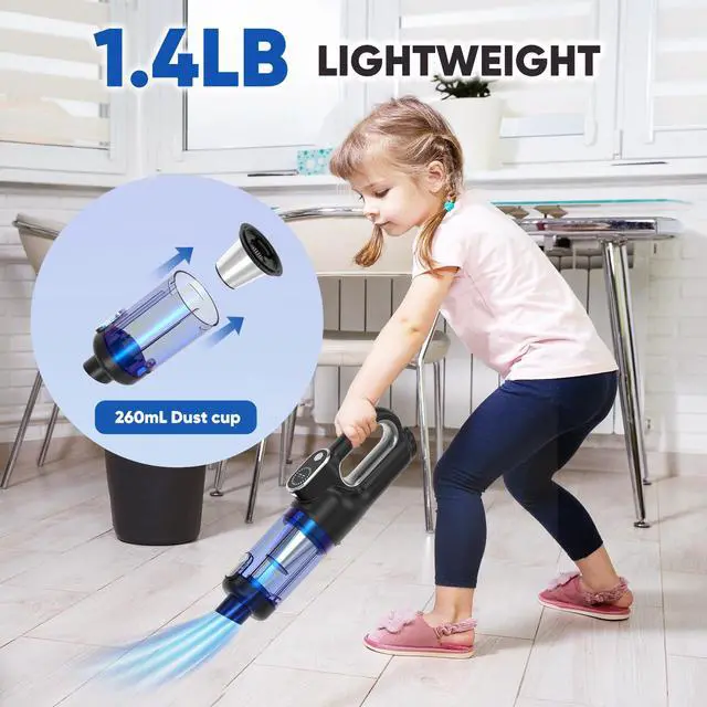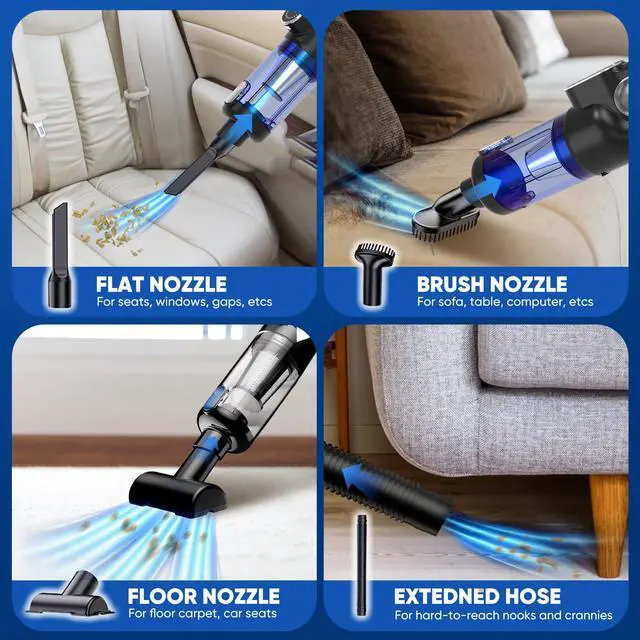 Cordless Car Vacuum Cleaner, Handheld Vacuum for Car Home Office Pet, Brushless Motor, Air Duster, Rechargeable, LED Light, Portable