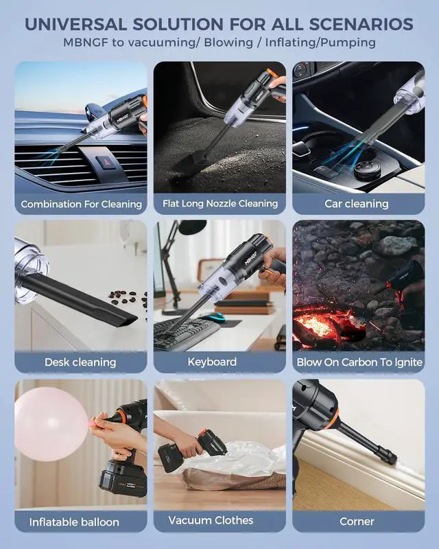 MBNGF Car Vacuum Portable Cordless,35000PA High Power Suction & Blower, Cordless Handheld Vacuum Cleaner for Car, Home, Office, Pet(Stellar Black)