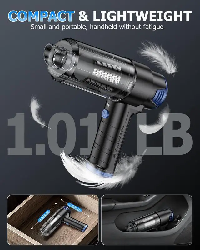 16000PA Suction PowerThis car vacuum portable cordless features a strong suction power of 16,000 PA and a motor speed of 84,000 rpm, making it quick and easy to remove hard-to-tackle pet hair, fine debris, and other common dirt. Designed to meet your diverse cleaning needs, it efficiently handles various challenges whether at home, in the office, or in the car, taking the hassle out of tidying up
