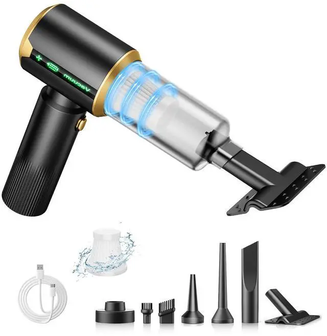 Pro 7-in-1 Cleaning System: Cordless mini vacuum cleaner comes with six dedicated accessories, including brush, blower, and nozzle to support multiple modes (vacuuming, inflation, pump). Meeting all your needs from fine dust removal to quick aerating. All accessories can be neatly stored in the included storage case, making it easy to store in the trunk.