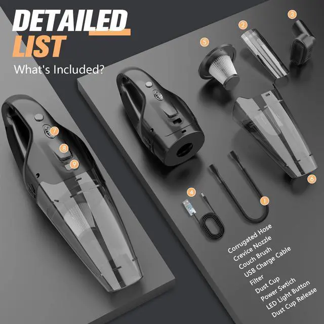 • LIGHT WEIGHTWe designed the hand held vacuum rechargeable to be lighter in weight and kept the 450 ml dust cup. You can take Mini Car Vacuums with you to clean your room or put it in your car and use it anytime.1.65 lbs makes cleaning effortless.