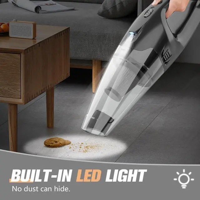 Hand Vacuum Powerful Suction, Hand held Vacuum Cordless Rechargeable with LED, USB Charge, 1.65LBs Car Vacuum with HEPA Filter, for Car/Home/Pet