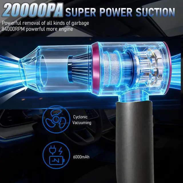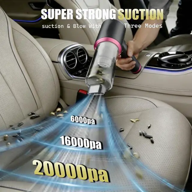 Handheld Cordless Car Vacuum Cleaner with 20000PA Powerful Suction4-in-1 Portable Mini Vacuum/Compressed Air Duster| 3-Speed Adjustable & 6000MAH Rechargeable Battery for Home Office