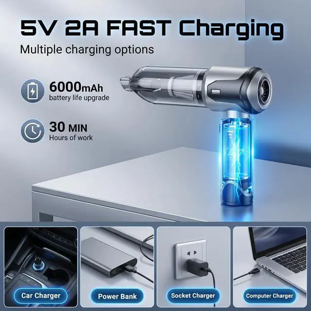 Handheld Vacuum Cleaner, 22000Pa Powerful Car Vacuum Cleaner Cordless, Lightweight Mini Car Hoover, Rechargeable Portable Air Duster for Car, Home, Kitchen