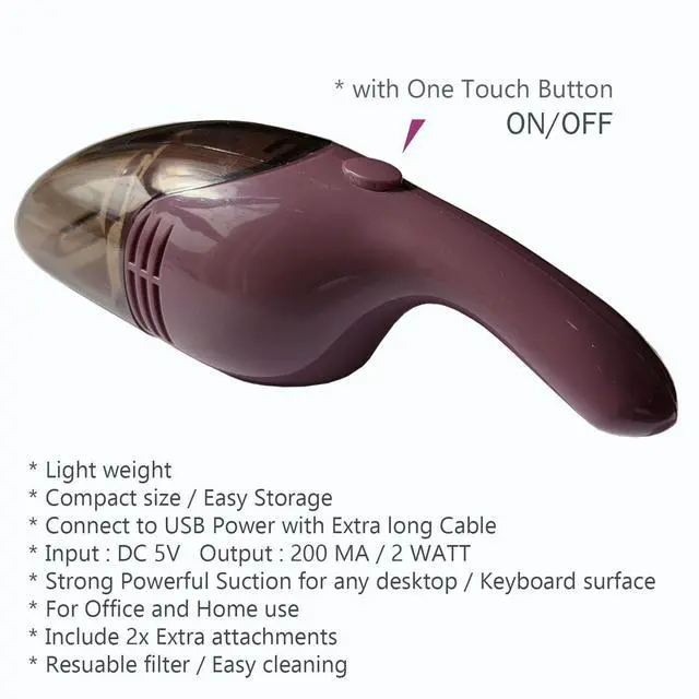 Strong Suction for Thorough Cleaning This mini vacuum delivers powerful suction to effortlessly pick up dust, crumbs, and debris from keyboards, desktops, and other small surfaces. Keep your workspace spotless with ease. Compact & Lightweight Design