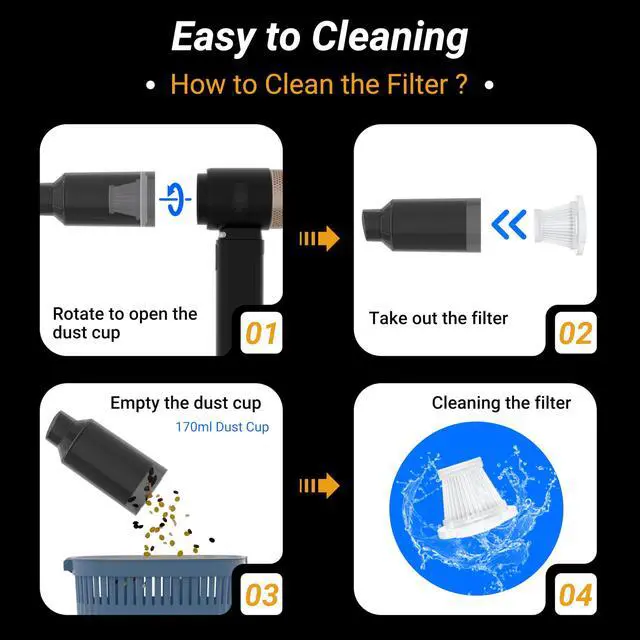 Simple DesignThis car vacuum cleaner has a stylish design and weighs only 0.95 lbs, making it very compact and lightweight. It is comfortable to hold and saves space, making it easy to carry and store. In addition, it is designed with an LED light and screen display, so you can easily clean dark places or at night. Its user-friendly design makes cleaning easier than ever.