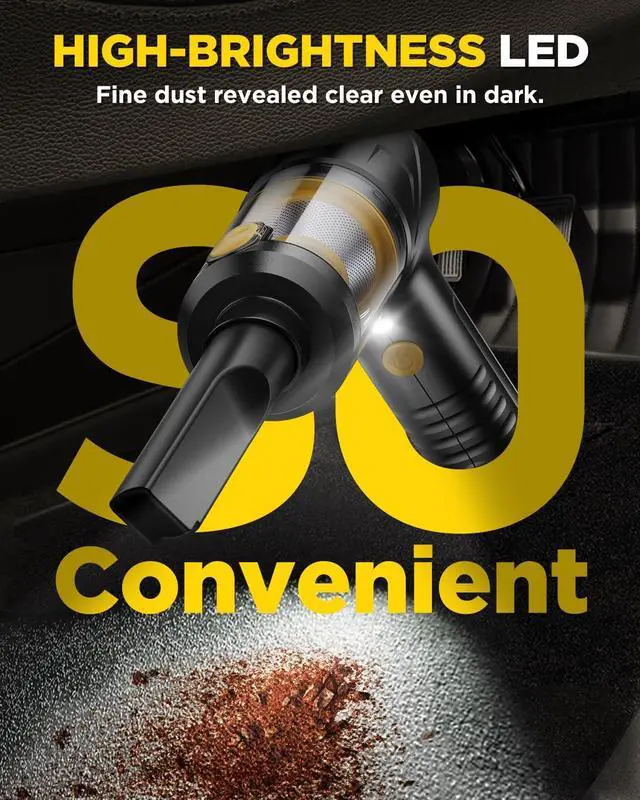 LED Illumination System - See the unseen! This car vacuum integrated LED headlight cuts through shadows, revealing hidden dust in floor grooves, under furniture, and deep within crevices. Activates automatically on startup no extra steps. Low-energy design ensures precise, thorough cleaning every time
