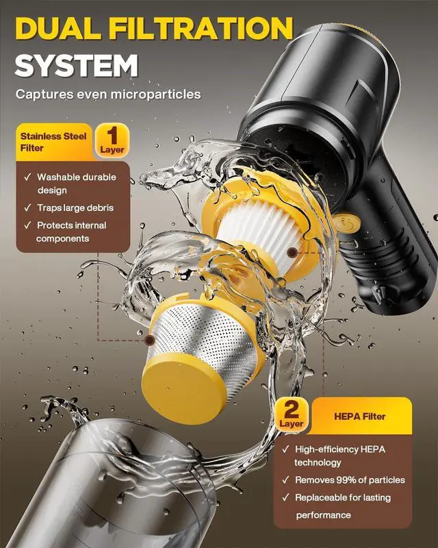Ultra-Portable Cordless Freedom - Lighter than your drink (just 0.8 lbs! ), yet packs serious power. This cordless vacuum have long-lasting battery offers instant cordless cleaning anytime, anywhere. Effortlessly tackle messes indoors, in your car, or outdoors. Stashes anywhere always ready for action
