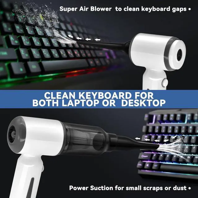 Portable Handheld Vacuum Cleaner: MEFELF mini car vacuum comes with a 4 attachment accessories for blowing, vacuuming, and pumping for your daily cleaning needs, and the powerful suction makes it a effortless house cleaning to suck dust and debris from your car seats, carpets, and crevices. The hand vacuum is also a blower that easily blows away dust from keyboards, camera lenses, and pianos and narrow space; It can also be used to pump up balloons, swimming rings, or vacuum seals. It is a good vacuumn for computer and keyboard with Bristle Brush for sensitive surfaces like Computer keyboards and electronics Cabinets and shelves Upholstered furniture (sofas, chairs).