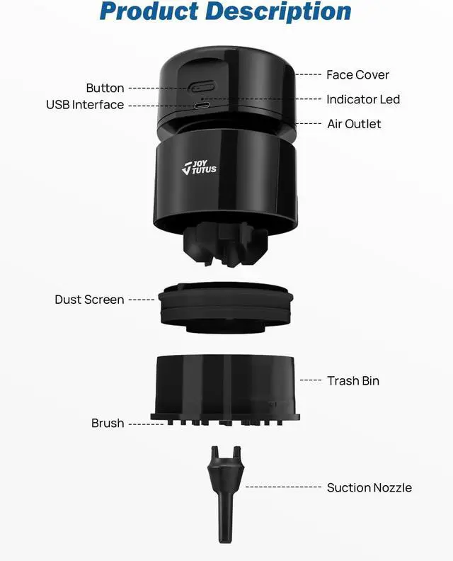 Precise CleaningThis mini desk vacuum comes with a detachable nozzle. You can easily cleaning dust of desktop, computer, keyboard, etc. It' s absolutely a perfect choice to clean hair and dust in different places that are hard to reach thanks to its handheld size