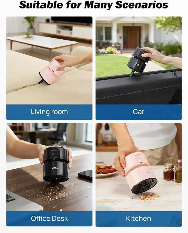 Portable & LightweightThis mini cordless vacuum cleaner weighs only 0.5 pounds, cordless, rotates 360°, is easy to operate, and can be easily cleaned with one hand. It is also safe for the elderly and students to use