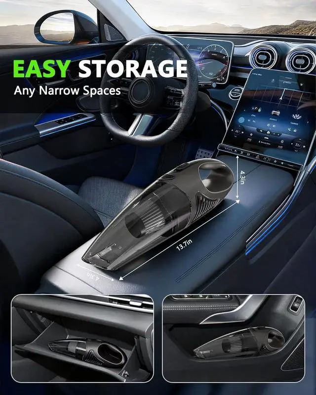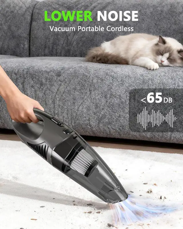 Large Battery Fast Charge: Rechargeable car vacuum is equipped with multiple large capacity batteries and Type-C fast charging, supporting 5V/2A adapters for flexible charging at home, in the car, or on the go. After being fully charged for 3.5 hours, the battery life can be extended by about 25 minutes. Compared to others, our mini vacuum has doubled its lifespan. The noise is only as low as 70dB, making cleaning quieter and more comfortable.