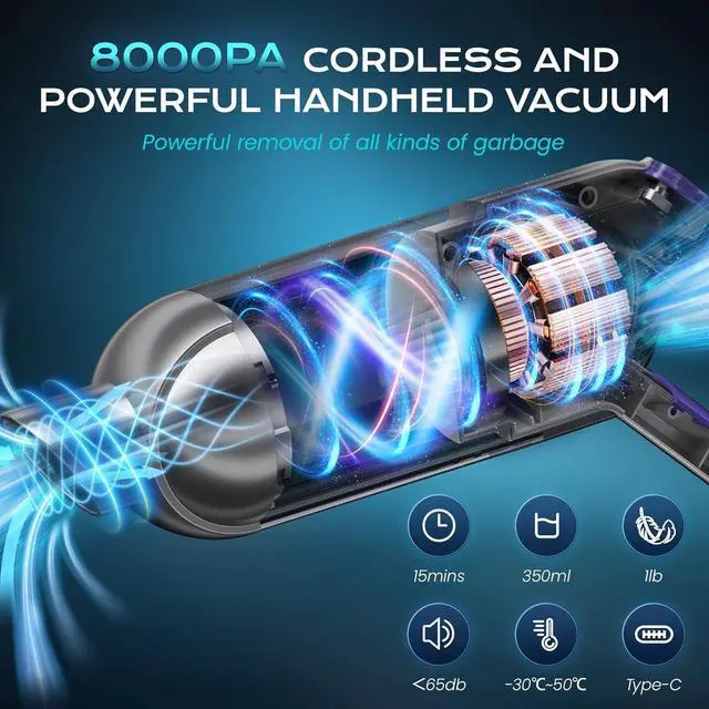 Cordless & Lightweight DesignWeighing only 1lb, this cordless handheld vacuum cleaner is designed for ultimate portability and ease of use. Say goodbye to tangled cords and effortlessly clean your car, home, or office anytime, anywhere.