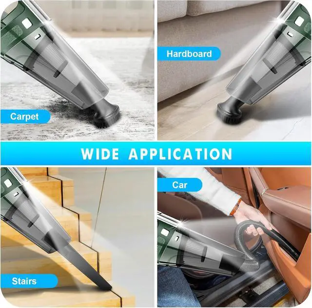 Cordless Portable Vacuum Cleaner: The handheld vacuum cleaner is cordless and offers more convenience for your cleaning work. It helps you to move freely around where you need to clean. Get rid of tangled cords and solve hard-to-reach problems. The LED light works well to illuminate those dark, hard to see places.