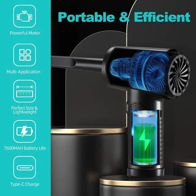 LED LIGHTING & PORTABLEThe air duster is designed with a LED light. It automatically illuminates when turned on the electric air duster, so you can easily clean up dark corners and places hard to reach, bringing great convenience to cleaning dust in darkness. The electric air duster is cordless and handy, so you can use it without effort and take it anywhere you go.