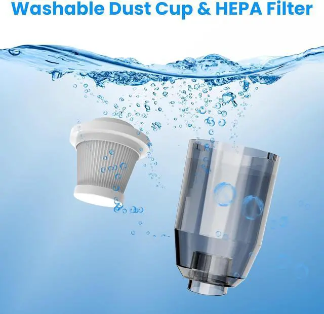 EASY CLEANING & REUSE: The semi transparent dirt bowl allows you to see the level of dirt, so you always know when to empty it. The washable trash can and Hepa filter can be directly cleaned in the sink. The dry Hepa filter ensures effective suction of the cordless vacuum cleaner while keeping dust and dirt out to prevent clogging.