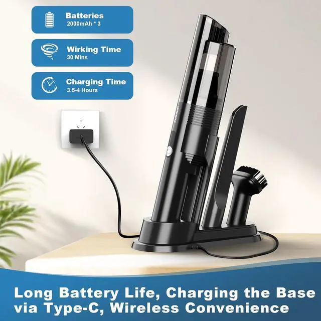 Powerful Suction Handheld Vacuum Cleaner Our car handheld vacuum utilizes a high-speed DC motor and innovative aluminum alloy fan blades, delivering a power output of up to 85W and exceptional suction capability.