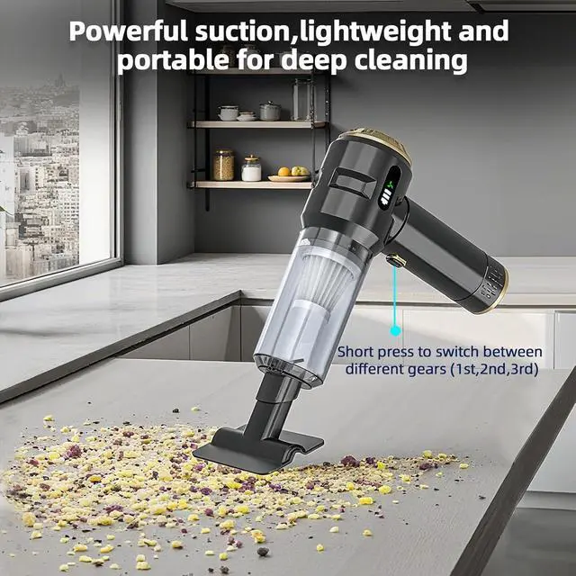 High-Performance Suction: Equipped with a high-speed brushless motor delivering suction power up to 22, 000Pa, this handheld vacuum incorporates noise reduction technology maintaining operational noise below 78dB. It promptly removes dust and debris, supporting thorough cleaning with minimal effort.