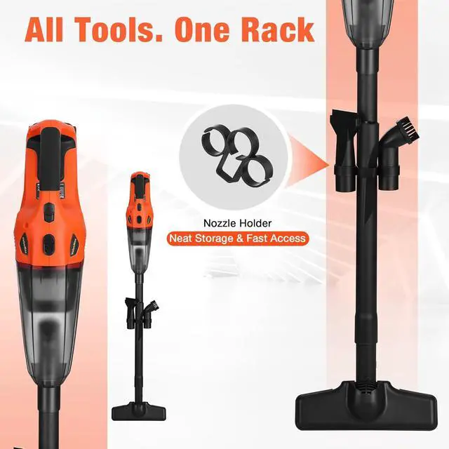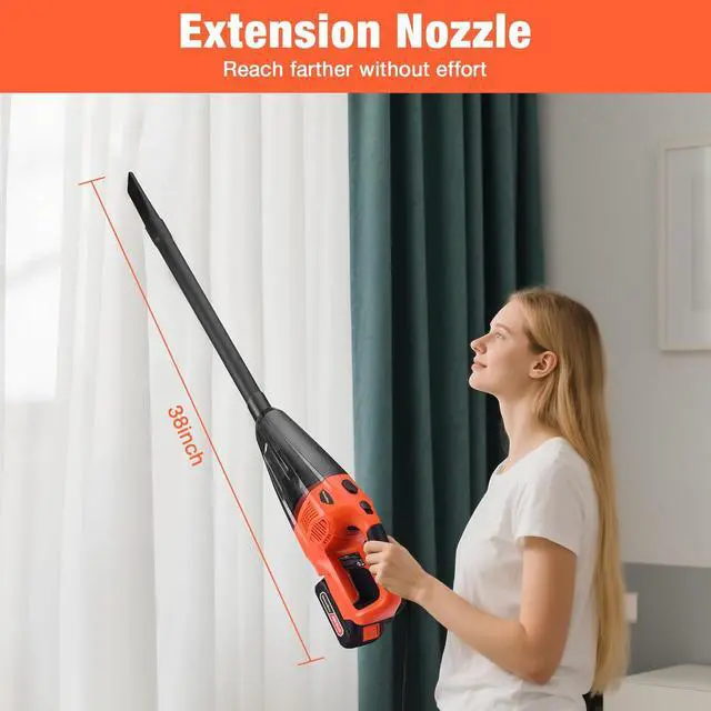 Extended Reach: This hand held vacuum, equipped with an extension nozzle, makes it easy to clean high areas and deep, narrow spaces. Perfect for reaching under beds, sofas, behind furniture, and under car seats or into crevices, achieving a thorough clean with less bending or straining