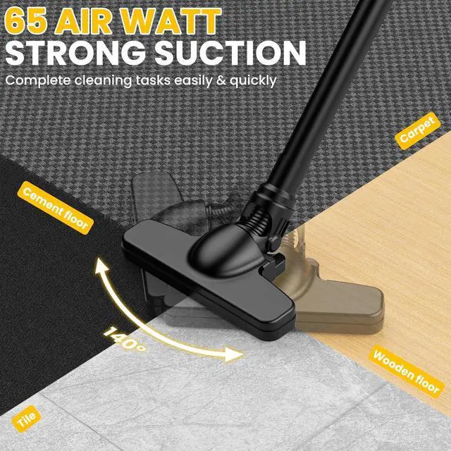 5 IN 1 Design: The vacuum cleaner comes with four different nozzles, brushes and flexible hose, this vacuum cleaner can meet all your cleaning needs, whether it' s carpets, hard floors, furniture, tight corners or cleaning up pet hair.