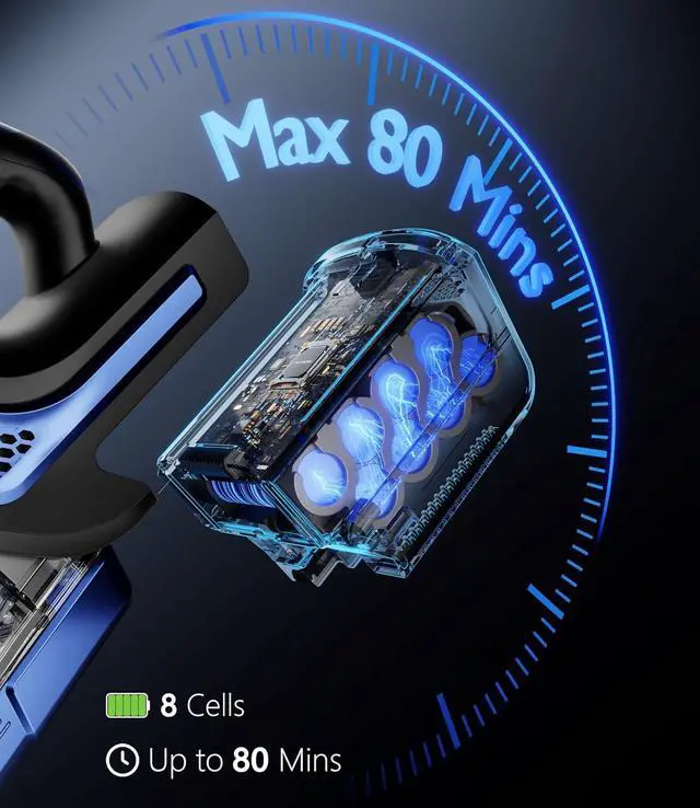Up to 80-Minute RuntimeClean your entire home without stopping! This rechargeable cordless vacuum cleaner runs up to 80 minutes in Eco mode, 50mins in standard modes, 25 mins in performance mode perfect for large homes. Use it as a Stick vacuum for floors or a Handheld vacuum for quick cleanups. It' s the only portable vacuum you' ll ever need!