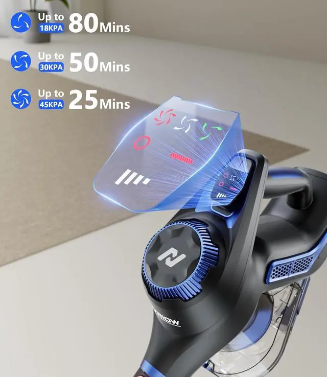 3 Smart Modes for Every SurfaceChoose the perfect power for every task! This versatile Stick vacuum offers High mode (45Kpa), Standard mode (30Kpa), and Eco mode (18Kpa) ideal for quick pickups or whole-home cleaning. Whether you' re cleaning carpet or delicate hardwood floor, this lightweight vacuum adapts to your needs.
