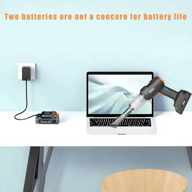 2×Interchangeable Batteries, Never Stop CleaningIncludes 2 rechargeable batteries (18V/120W) for 50min total runtime. Swap batteries instantlyperfect for deep-cleaning large SUVs or entire homes.
