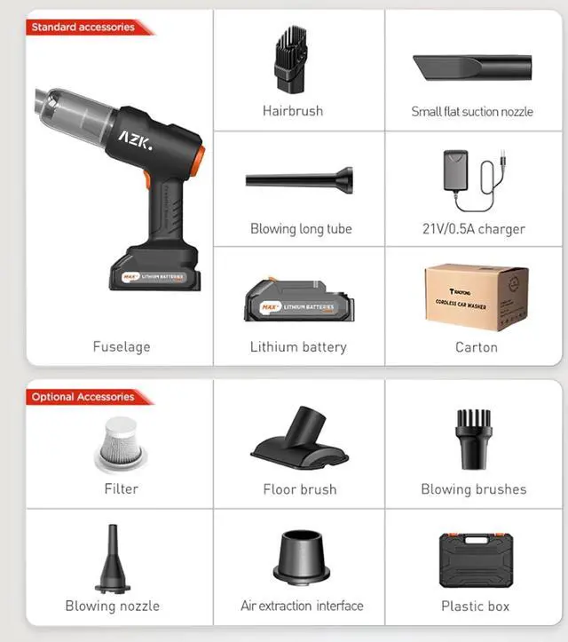 Car & Home All-in-OneComes with 7 specialized nozzles (crevice, brush, upholstery) for detailing cars, cleaning pet hair from sofas, or dusting office desks. 1 tool, 100+ uses.