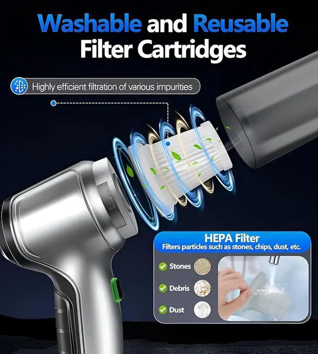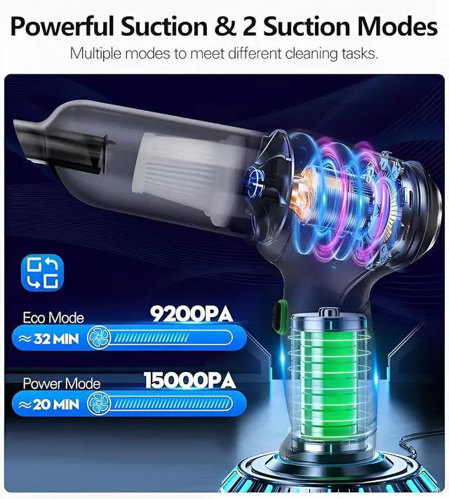 Cordless Design: The handheld vacuum cleaner features a lightweight and portable design, enabling you to quickly move it from one room to another, or to use easily for car