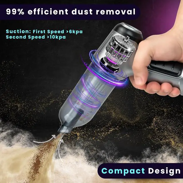 Compact and Lightweight Design: Our mini car vacuum and mini vacuum cleaner offer ergonomic handling, making it easy to maneuver in tight spaces. Perfect as a portable vacuum for car use and quick cleanups at home.