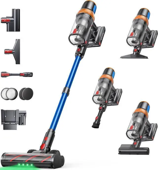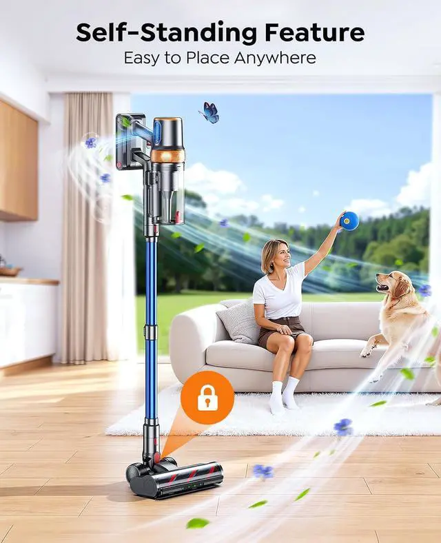 - & The self-standing design lets you pause cleaning anytime without leaning or tipping. It comes with a two-in-one brush head, a sofa brush, Mattress Cleaning Tool, allowing you to convert the upright vacuum cleaner into a handheld vacuum cleaner as needed. It also comes with an adjustable telescopic tube that can be adjusted to suit your height, eliminating the need to bend over frequently. All accessories can be easily switched with the push of a button.