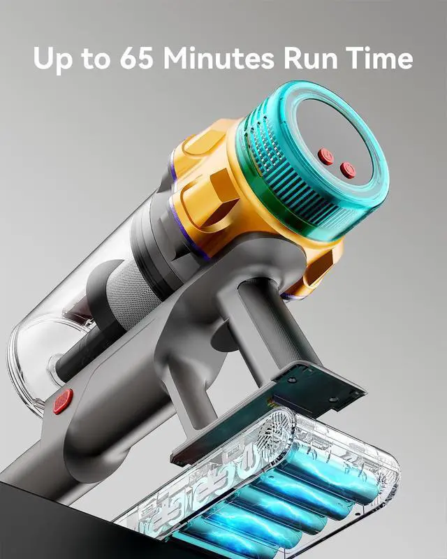 [Up to 65 Minutes of Runtime]: Powered by a high-capacity 8×2800mAh lithium-ion battery, the P11 rechargeable vacuum provides up to 65 minutes of continuous cleaning in ECO mode. With an optional spare battery, you can easily double the runtimeperfect for cleaning large homes without interruption.