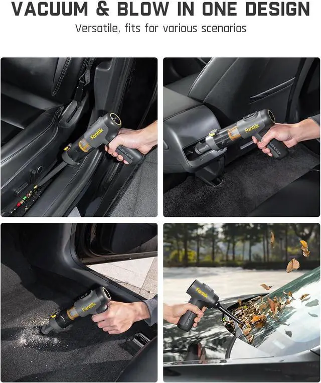 4-in-1 Multifunctional Car Vacuum: With a variety of accessories, our car vacuum cleaner can do the job of vacuuming, blowing, inflating, pumping perfectly. Slim V9 Mix mini car vacuum redefines car cleaning, from car seats, grooves