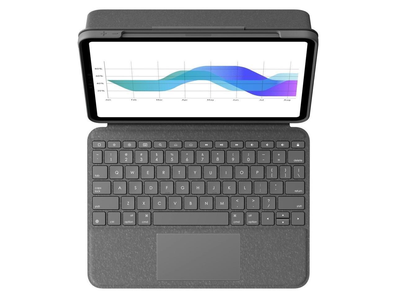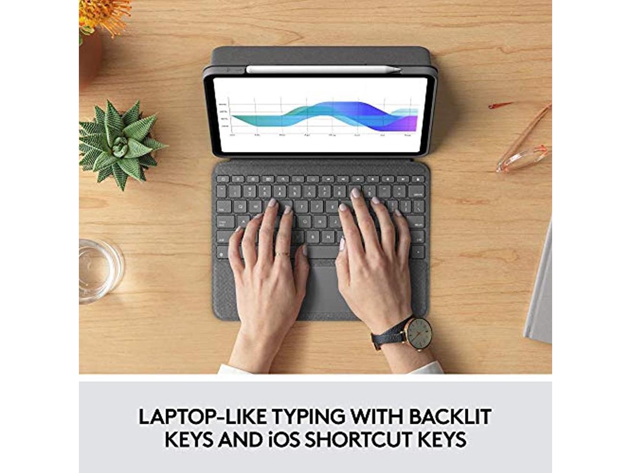 Laptop-Like Typing: Large, well-spaced keyboard containing a full row of iPadOS shortcut keys lets you type comfortably with speed and accuracy