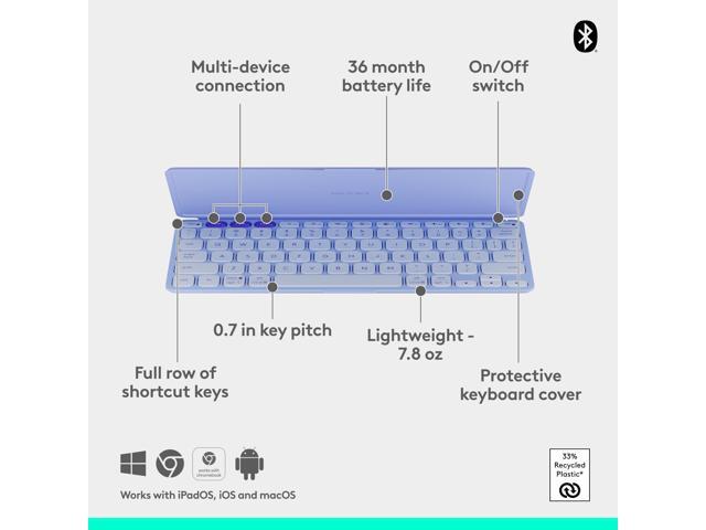 Logitech Keys-To-Go 2 Portable Bluetooth Keyboard for Tablet With Built-in Cover - Slim and Compact Wireless Keyboard for Windows, Android, Linux, iPad, iPhone, Mac, Apple TV - Lilac