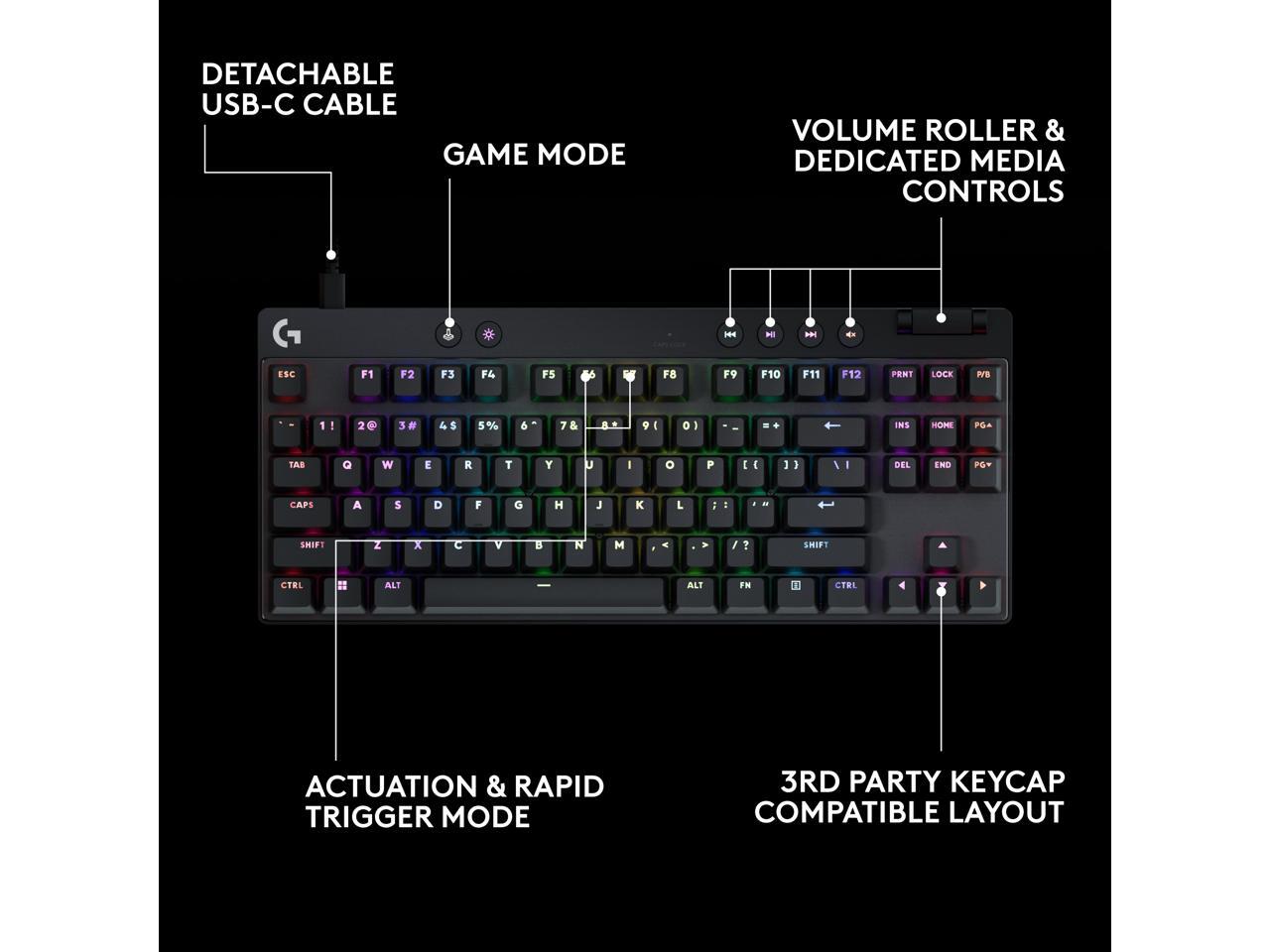 Logitech G PRO X TKL RAPID Tenkeyless Wired Gaming Keyboard With Magnetic Analog Switches, Rapid Trigger Mode, Adjustable Actuation, and Customizable RGB Lighting, Black - Cable Connectivity - USB Typ